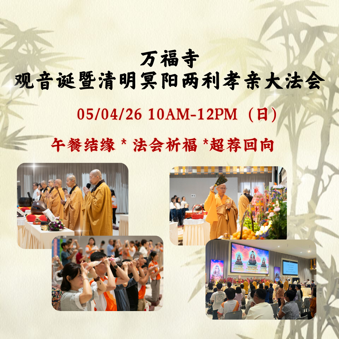 ✨日期:2026年4月5日(星期日)清明节正日✨流程时间:法会 10AM-12PM午餐12PM-130PM