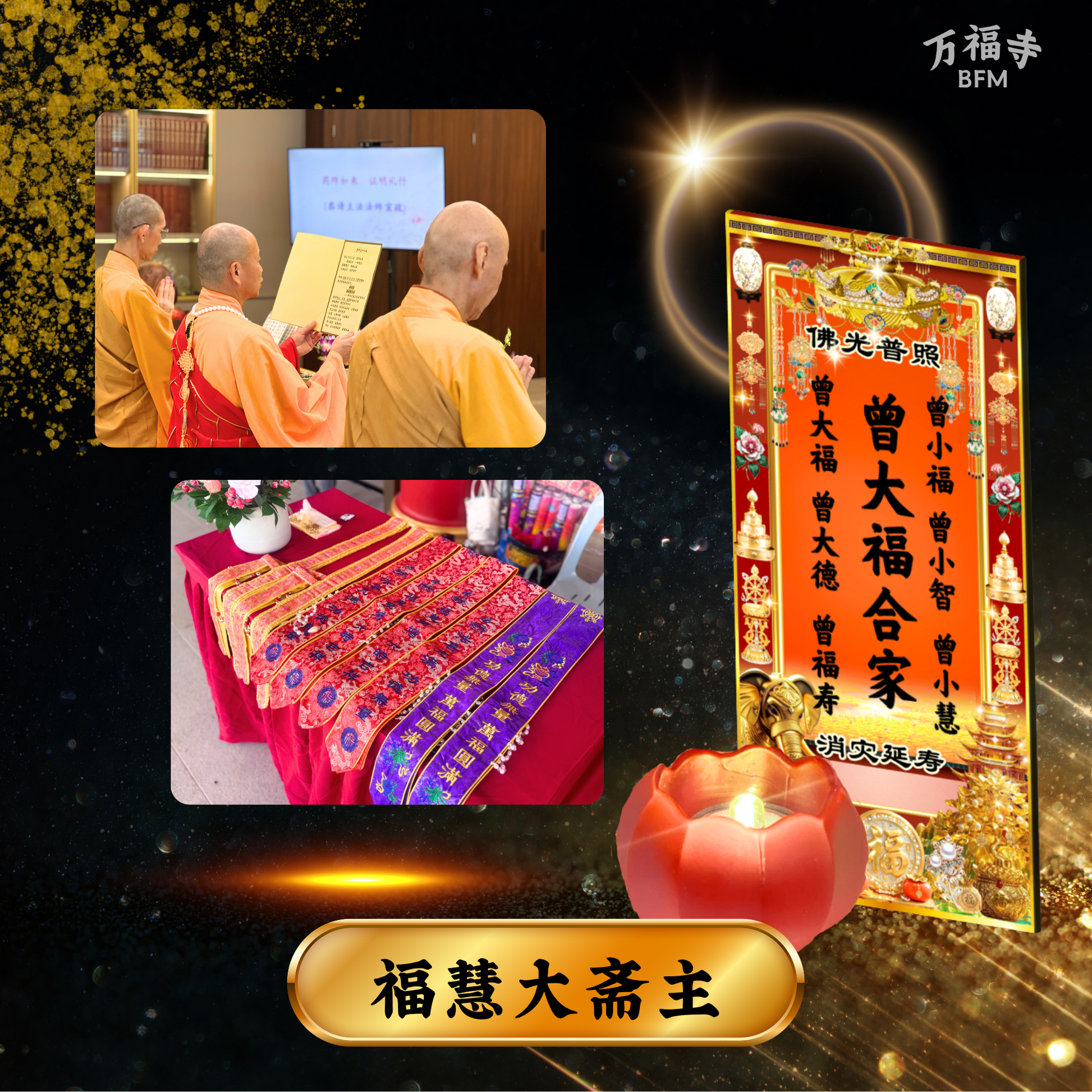 🪔寺院为斋主特制【佛前合家祈福特大牌位】,斋主可以再加六个姓名,祈愿佛光普照合家安乐吉祥圆满。
